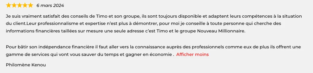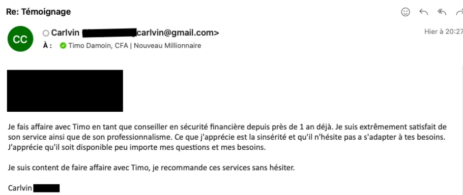 Actuellement, Timo gère un portefeuille d'investissements d'une valeur de 20 millions de dollars pour ses clients.