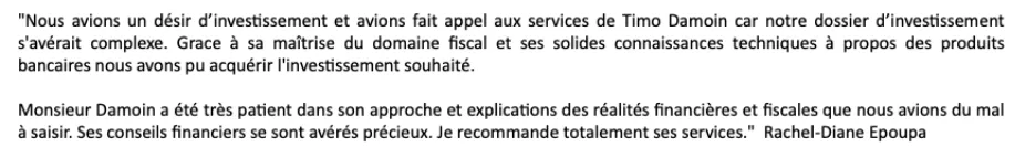 Diplômé d'une maitrise en Ingénierie Financière, Timo est également titulaire de la fameuse certification CFA*, indispensable pour la plupart des gestionnaires de portefeuille.